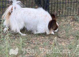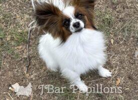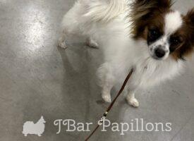 Her sire is Annabelle’s only son Ch J Bar’s I’m Your Huckleberry and her mom is J Nar’s Awesomes Blossom. I’m working on earning Blossom’s DOM. She has been an awesome producer of show quality puppies in every litter.