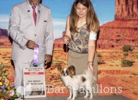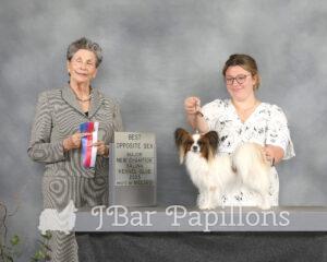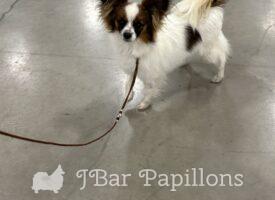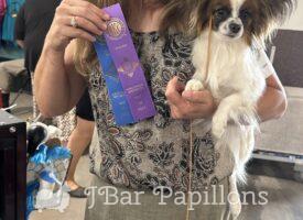 Her sire is Annabelle’s only son Ch J Bar’s I’m Your Huckleberry and her mom is J Nar’s Awesomes Blossom. I’m working on earning Blossom’s DOM. She has been an awesome producer of show quality puppies in every litter.
